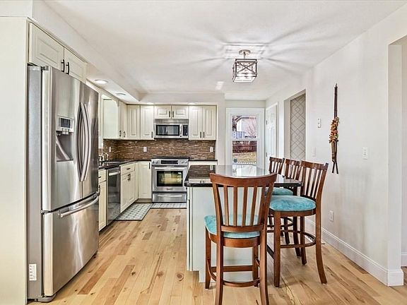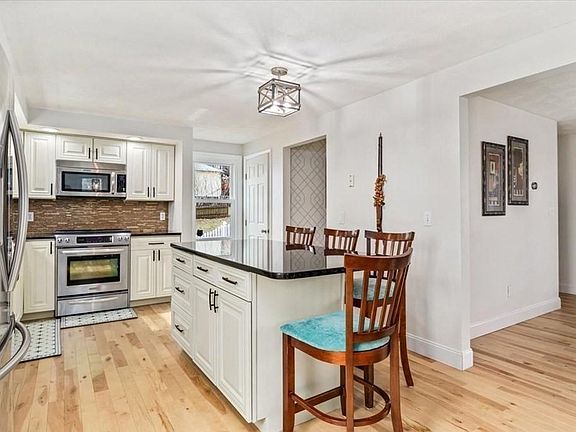 This young, one owner, garrison colonial style home has been meticulously maintained and updated. Beautiful engineered hardwood flooring and lighting throughout. Modern stone-tile fire placed living room with picture window. Tremendous natural light. Open floor-plan is perfect for entertaining. Stunning kitchen with oversized island, granite counters and stainless steel appliances. Half bath & closet by front foyer hallway. Upstairs; 3 spacious bedrooms and updated double vanity bath. Excellent closet space throughout. Bonus, finished lower level with high ceilings. Plumbing and framing in place for 2nd full bath. Rear deck and spacious fenced in yard. Privacy abounds. Professionally installed french drain w/sump system 2018. Roof 2019. Plenty of off-street parking. Walking distance to town center and commuter train, great restaurants and local shopping. Solar panel lease will transfer to the new owner to keep your electric bills in check. Offers due 4/4/2022 at 5pm. Home sweet home!