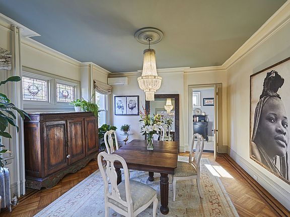 Above All The Rest When only the very best will do, this prime example of classic architecture and wonderful taste is on display throughout this stunning Prospect Park South home. The sellers have so expertly blended the finest details and historic charm with a wonderfully executed modern renovation. The oversized front porch welcomes you into a spectacular foyer with double arches and stairway featuring lovely ornamentation. The corner living room provides a restored mantle with marble accents and one of several stained glass windows so expertly preserved. The dining room certainly makes a statement and is equally as bright and well-portioned with four windows. One can enter the kitchen either through the dining room or through the main hall of the home. Access from the dining room brings you to an oversized prep-space/butler's pantry with sink and again four windows taking advantage of the east facing/morning light. The kitchen was recently renovated with farm-style sink, high-grade stainless appliances and Caesarstone counters. The kitchen wraps across the back/east side of the house and bathes in wonderful light from the oversized garden. There is counter seating in front of the double-size glass sliding doors leading to a back porch area or, one can consider adding a farm sized table to the central space. The tile floor certainly adds a touch of sophistication. Just off the central kitchen is a renovated powder room so wonderfully tucked away and decorated from floor to ceiling with penny tile. The oh-so private garden provides a host of options for planting and entertaining. YES THERE IS A DRIVEWAY and there is also access from the back of the home to the finished lower level. Up the stairs and past a charming second floor landing with decorative tile, there is the first of six bedrooms. The bedroom on the west side of the house, with rare diamond pane transom windows and equally impressive french doors with similar design, leads to a small terrace. The corner master with bay windows boasts wonderful proportions and provides the ultimate refuge. One of the many focal points of this home is the absolutely stunning master bath which is larger than most bedrooms. The tasteful tiling fuses so beautifully with the option of a classic soaking tub under a chandelier or enormous glass enclosed stall shower with much space to spare to relax in ultimate luxury. There is one additional bedroom on this floor which could easily accommodate a full-size bed. The space on the third floor (three specious rooms with windows) and another renovated bath could easily allow the new owner to use the top floor for family and or guests and keep the second floor as totally private quarters. Once again the space is bright and welcoming with a continuation of diamond pane transom windows. Split systems cool the house and a finished basement is beyond what a buyer would even imagine with large laundry room, enormous rec space/ room for wine cellar and so much more. Strategically located just a short distance to the Q train stop at Beverly Road, the B train at Church Avenue and all the great shops and eateries along Courtelyou Road such as The Farm at Adderly, Purple Yam along with quaint shops such as Brooklyn Artery and Sycamore. Prospect Park is just a short distance away. Floor plan to follow.