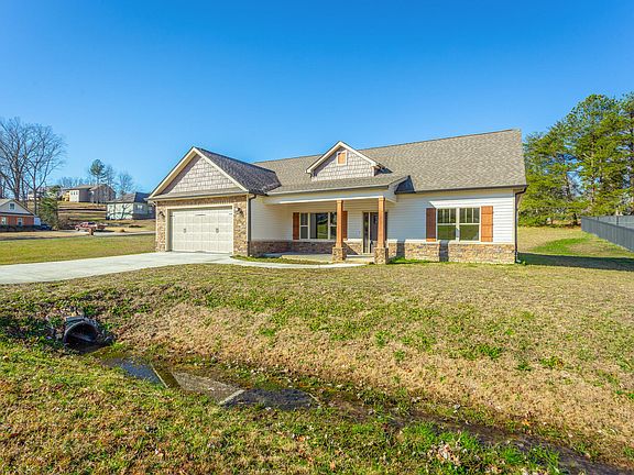One level Craftsman Cottage on 1/2 acre lot. This three bedroom, two bath home welcomes you with an open concept great room, dining room and kitchen. The stacked stone fireplace will keep you warm and cozy. In the kitchen you will find custom cabinetry with granite counters and stainless appliances and pantry. The split bedroom plan has a large master suite on one side and two bedrooms and full bath on the other along with laundry room.The master bath features tub and large tiled shower. Covered front and back porches gives you lots of outdoor space. Website shows this property does qualify for 100% USDA loan. Call for your showing today.
