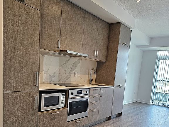 Welcome to the Stunning Mobilo South! Condos Located in the Heart of The Vaughan Metropolitan Centre. Huge windows and tons of natural light. Feels like brand new, with many upgrades. A spacious bedroom + a large-sized den, 1 full 4 pc bathroom, parking & locker owned. Hardwood floors throughout, spacious kitchen, S/S stove/cooktop & range, fully integrated/hidden built-in fridge and dishwasher. It is located south of Highway 7, east of Highway 400, and north of Highway 407. Close to IKEA, Walmart, Hospital, Vaughan Mills, restaurants, and Canada's Wonderland. Includes the following Amenities: Fitness center, 24-hour concierge, Party Room, TV and games lounge, theatre room, kids playroom, outdoor play area, BBQs, guest suites, and bike storage.