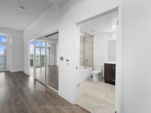 Experience modern city living at 60 Honeycrisp Crescent in Vaughan's Metropolitan Centre. This contemporary 1-bedroom plus den suite in the Mobilio South Tower offers open-concept living with 10-ft ceilings and sleek laminate flooring. The stylish kitchen features stainless steel built-in appliances, a paneled fridge and dishwasher, quartz counters, and ample storage. The versatile den is perfect for a home office, while the bright bedroom offers a large closet and floor-to-ceiling windows. Enjoy unobstructed east-facing views from the private balcony and the convenience of in-suite laundry. Residents have access to premium amenities including a fitness centre, theatre room, party lounge, guest suites, and BBQ terrace. Just steps to the Vaughan Metropolitan Centre subway, Viva, YRT, and GO Transit, with easy access to York University, Vaughan Mills, IKEA, and major highways. A perfect blend of style, comfort, and convenience.
