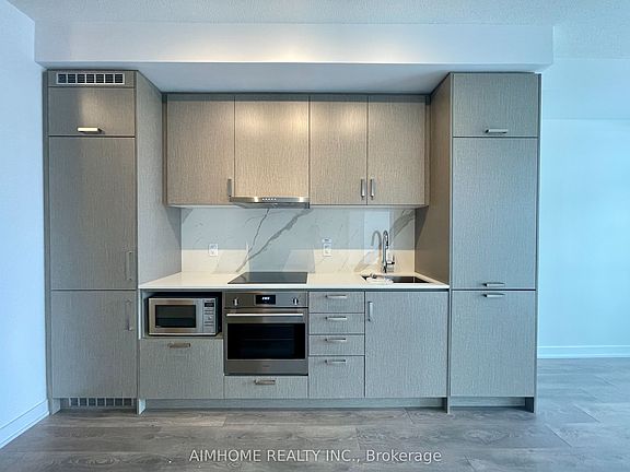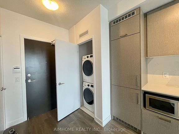 Mobilio South Tower by Menkes. Walk to SVMC subway station. Quality finishes. This bright 1+1 features unobstructed west view, built-in appliances, floor to ceiling windows, laminate floor through-out, side-to-side balcony. One parking is included.Extras: Fridge, Dishwasher, Stove, Microwave, Front Loading Washer And Dryer, Elfs, Window Coverings.
