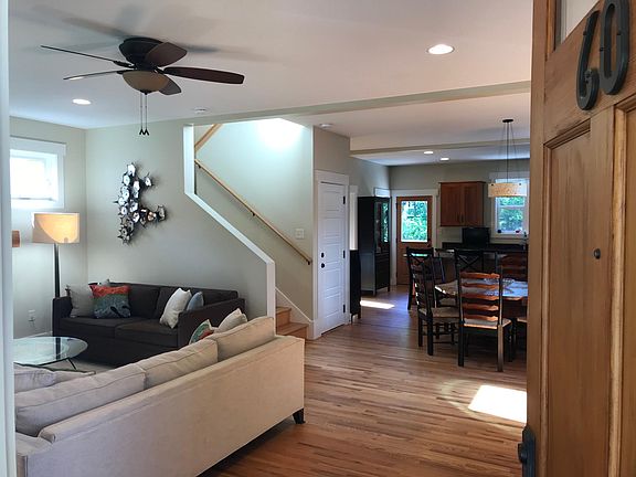 3 bedroom, 2.5 bathroom home in the Montford neighborhood, just a 15-minute walk to downtown Asheville. Fully furnished. Open floor plan, high ceilings, 1,500+ sq ft with lots of light. Modern mountain feel with a beautiful wood burning fireplace and tasteful original art works. The kitchen is fully equipped (all large and small appliances), washer/dryer, and three TVs throughout. This home is perfect for families or anyone wanting a spacious, private, and comfortable getaway in Asheville, NC. Walk to restaurants! This craftsman home was built in 2010. High ceilings and large windows - it is bright, airy, and open. Includes a large front porch, a back deck overlooking a lush green canopy, and a Juliette balcony off of the master suite. Note, the basement apartment is used occasionally by the owners. The owners use a separate entrance at the back of the house. There are no common areas or shared surfaces. COVID: We have implemented a very strict cleaning protocol set by our county, which is more advanced than CDC guidelines. This including sanitizing all surfaces, washing all bedspreads, and requiring a 24 waiting period between departing guests, the cleaners, and the arriving guests. City of Asheville Regulations: The City of Asheville requires a minimum of a 30 night stay for homes rented with full kitchens or homes with more than two bedrooms or rentals that do not have a host on-site each night. Guests have full access and privacy of the front porch, home, back deck, and Juliette balcony. The owners walk on a path around the outside of the house to the backyard to access the basement apartment. The owners only visit occasionally. The guests do not have access to the basement apartment. There are no shared inside or outside living spaces. Location Location Location! We are located in the Montford neighborhood a short walk to downtown Asheville. The neighborhood represents homes of many architectural styles, many of which were constructed in the late 1800s and early 1900s. A portion of Montford is a Nationally Registered Historic District. There are three neighborhood eateries, which include Nine Mile (Caribbean cuisine), Chiesa (rustic Italian), and All Day Darling (casual breakfast/lunch/dinner). The Asheville Visitor's Center is in Montford and only a 5-minute walk from our house. New Belgium Brewery and River Arts District (RAD) are less than 2 miles away, West Asheville is 3 miles, and Biltmore Estate is about 5 miles down the road. We are available for recommendations regarding Asheville sites, restaurants, etc. or any other guidance, if requested. We love Asheville and want your stay to be easy and enjoyable. We are happy to help you make the most of your visit. Many visitors walk, drive, bike, or Uber around town. You can also bike to West Asheville, the River Arts District, UNCA's campus, and New Belgium Brewing. Various tour companies offer bus, walking, segway, and even pubcycle tours! The Asheville Regional Airport (AVL) is a 15-minute drive to our house. Asheville is in the mountains therefore the city is hilly, everywhere. The downtown is hilly, the Montford neighborhood is hilly, and the walk from our home to downtown is hilly. Owner pays all utilities including internet. Security deposit of $1,000 required. Lease is a minimum of 30-nights and maximum of 2 months. Property is available November 5 through mid-January. The tenant/guest must notify the owners of the length of their lease in advance. No pets, no parties, no smoking or vaping. Public parking on Houston Street, usually there are 1-2 spots available directly in front of the home. This home is lived-in so while it is very clean, it is not immaculate. Guests can expect the personality and charm of a loved home...books on the shelves, plants, spices & food in the cupboards, and household supplies in the cabinets & drawers. Dressers are emptied for guests and closets are half-empty for guests. Please make yourself at home!