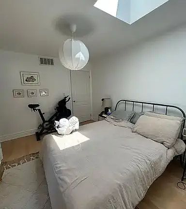 Welcome to your new home in the annex, this upper level two bedroom two bathroom with two skylights for extra natural light and maple hardwood flooring has to be seen. An arched east facing window in the living room adds an element of elegance and classical design allowing you to enjoy the morning sunrises and then cozy up in the evening with the gas fireplace. The bright skylit dining area grants you the space and light to enjoy morning coffees and evening meals. The primary bedroom has an ensuite four piece bathroom, skylight for added natural light, built in closets and a walk out north facing balcony. The second bedroom is well light and spacious, which allows it to be either a bedroom with a built in closet for added storage or easily fit in a home office for at least one or two people. Additional storage in the lower level plus ample amounts in the unit will help to keep the space open and uncluttered. Steps to Bloor St West and two subway stops.