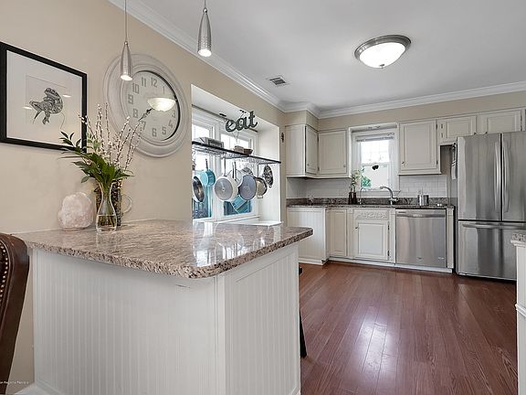 It's all about the location! Imagine living just across the river to Red Bank's great restaurants and nightlife, shops, NYC trans, marinas and parks. Situated in the heart of River Plaza, the location also offers easy access to schools, beaches and the Parkway. Boasting lots of curb appeal on a corner property with side street driveway/garage access, this 3-4 bedroom, 2.5 bath center hall colonial features a granite kitchen leading to family room with brick fireplace, second floor laundry, and fenced yard with an expansive paver patio that's perfect for gathering with friends and family. A great home in a great location at a fantastic price! This home is in Middletown with an 07701 zip code.