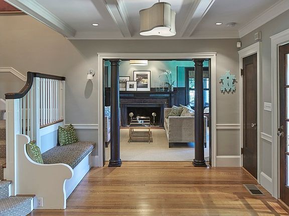 Elegance and craftsmanship define this 5 bed, 3.5 ba Arts & Crafts residence steps to Newtonville cafes, shops, overlooking award-winning Newton North HS. Original details + modern kitchen/bathrooms/systems create ideal New England home. Designed for entertaining, foyer joins living and family rms, each w/fireplace, beamed clgs, built-in benches, cabinets, bookshelves. Superb tiled solarium w/vaulted clg provides unforgettable setting for elegant dinners, flows seamlessly to serene garden. Beautifully appointed eat-in-kitchen w/vast storage opens to patio. 2nd fl primary suite w/gas fp, sleek modern bath, dressing rm. Custom millwork office and 2 bdrms share lovely hall bath. Private 3rd fl ideal for guests, au pair, teen suite. Lower-level hosts mechanicals, huge laundry room, space for exercise and wine cellar. Ideal location near MBTA, I-90, Bullough’s Pond. A refreshing change from every home you’ve seen this year, 60 Hull perfectly pairs timeless beauty with modern sophistication.