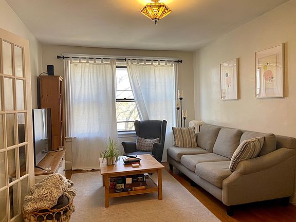 Front-facing two beds, one bath, across from the Emerald Necklace. Hardwood floors throughout with original crown molding and tall windows. Laundry in the building. Heat and Hot water included. Pets welcome! Located just a short distance from the E and D subway lines. 12 months. Heat and hot water included. Pet friendly.