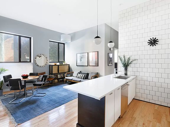 Welcome to unit 1F, in the Pencil Factory Condominium. This well sized 2bedroom 2bathroom is the perfect home to enjoy the lively waterfront area of Greenpoint. This first floor unit is situated to have interior courtyard views and no street facing windows..it's perfectly quiet and serene!! This beautifully designed unit greets you with a lovely foyer and soaring 12 foot ceilings!! The open concept kitchen presents a huge island with sleek countertops, abundant white cabinetry, and GE stainless steel appliances for the cook. The living space features high ceilings, floor to ceiling windows, pristine oak hardwood flooring, a large enough open space to have a dining table, and an abundance of closet space. The primary bedroom has an in suite windowed bathroom where you find a deep soaking tub creating a spa like experience to pamper yourself after a long day. The second bath with crisp white finishes is perfectly situated near the second bedroom. Custom cabinets contain the PTEC units throughout the apartment providing a quieter and more aesthetically pleasant heating and cooling experience. The full sized washer/dryer bring true convenience to this most prized Greenpoint condo opportunity.Originally built in 1872 for the Eberhard Faber pencil company and now one of Greenpoint's only luxury condominiums, renovated and rehabbed in 2009. The building offers all occupants a fully automated E-doorman system with newly renovated amenities including a package room, residents lounge, fitness center, and the newly completed play room. The common roof deck is enhanced by a restroom for convenience while entertaining on the spectacular roof with sweeping city and harbor views. All the buildings amenities come with access to WIFI so you can truly make the most of the additional spaces of the building. Storage is available for rent. Bike storage is provided. The building has parking available for sale or rent at an additional expense. Located on the Greenpoint waterfront, just one block to the Greenpoint Ferry landing and two short blocks to the G train your commute will be a breeze. Transmitter park and pier couldn't be closer! You'll enjoy movies from the grassy field and walks along the pier. With countless new cafes, shops, bars, and restaurants plus more opening every day.