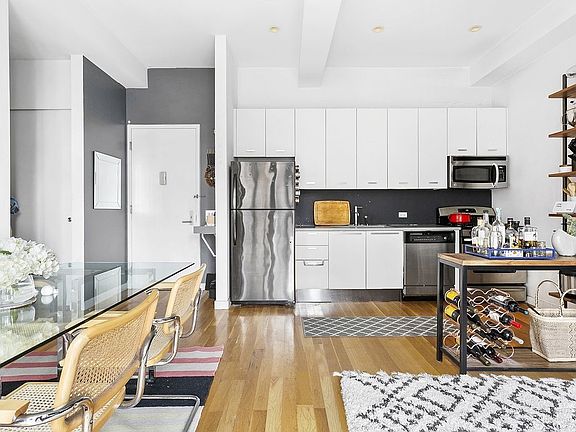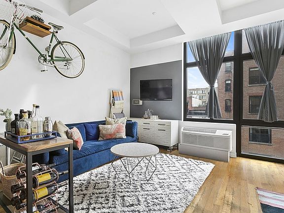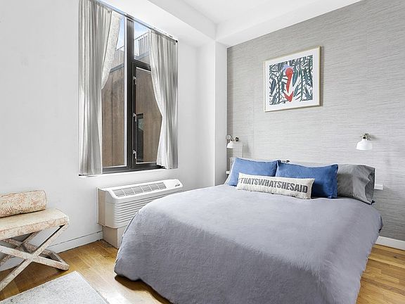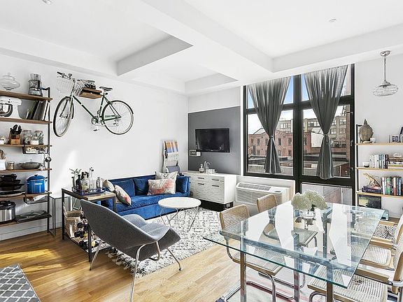 Pin-drop quiet one-bedroom condo at the Pencil Factory, one of Greenpoint's most popular waterfront buildings. High ceilings, well laid out with south-facing courtyard views through oversized windows. Oak plank flooring, high, beamed ceilings custom bath with porcelain tile and Zuma soaking tub, and lots of closet space. Washer-dryer included. Building amenities include video-intercom security, community room, playroom, common roof deck with panoramic views and gym. Private storage and attached parking are available for an extra fee. The Pencil Factory is located among the neighborhood's best restaurants, cafes and lounges. Commuting is a breeze with the G train and ferry terminal only two blocks away. Abated taxes until 2025. Pet-friendly, too!
