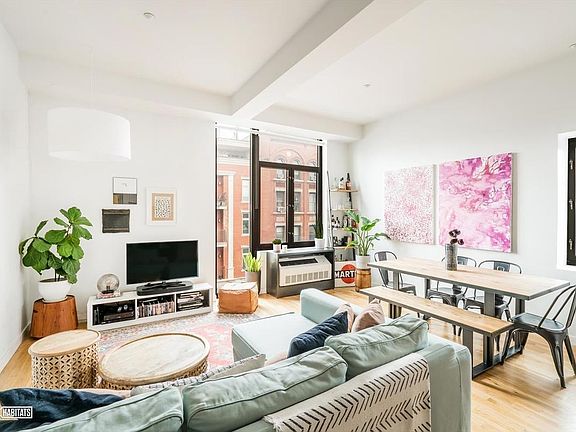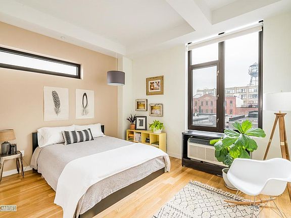 Welcome to unit 3t, in the Pencil FactoryCondominium. This corner unit is bathed in light thanks to its triple exposure! At 1114sqft this well sized 2bedroom 2bathroom is the perfect home to enjoy the lively waterfront area of Greenpoint. This beautifully designed unit features high ceilings, floor to ceiling windows, pristine oak hardwood flooring, a large living space , stainless steel kitchen, an abundance of closet space, a windowed master bath where you find a separate shower and deep soaking tub creating a spa like experience to pamper yourself after a long day. The second bath with crisp white finishes is perfectly situated near the second bedroom. Newly updated PTEC units and full sized washer/dryer bring true value to this resale in a tax abated condo with all the amenities of modern living. Originally built in 1872 for the Eberhard Faber pencil company and now one of Greenpoint's only luxury condominiums, renovated and rehabbed in 2009. The building offers all occupants a fully automated entry door system with package room, a residents lounge, fitness center, pool table room, bicycle storage and common roof deck enhanced by a restroom for convenience while entertaining on the spectacular roof with sweeping city and harbor views. Located on the Greenpoint waterfront, just one block to the Greenpoint Ferry landing and two short blocks to the G train your commute will be a breeze. Transmitter park and pier couldn't be closer! You'll enjoy movies from the grassy field and walks along the pier. With countless new cafe's, shops, bars, and restaurants plus more opening every day.