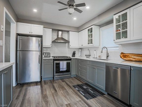 Welcome to 60 Jefferson Court! This 3 bedroom semi has had a makeover, and is tastefully renovated with modern trends. Located in a desirable area of North Welland and situated on a nice sized lot. Those who like cooking and entertaining, this kitchen will be one you will fall in love with; Fully updated with with quartz countertops, new cabinets, a new dishwasher and stove. Enjoy your morning coffee on your new back deck right outside your kitchen doors. Book a showing today! Updates include deck (2019), flooring (2019), bathrooms(2019), kitchen (2019), furnace and AC approx 10 years old and roof approx 12 years old.