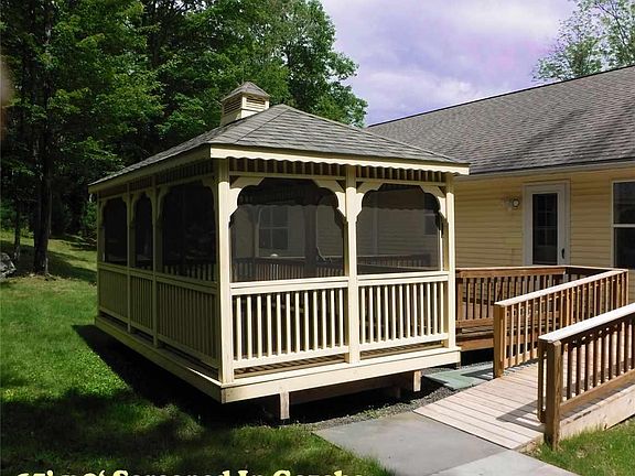 Lovely immaculately maintained home set on 3.9 private wooded acres in low tax Olive. This 3 bedroom 2 bath home features a finished lower level, central air, standby generator and screened gazebo off outdoor deck. A separate 2 bay barn/garage could be converted into a studio or workshop. The wooded setting, seasonal stream and close proximity to the Ashokan Reservoir make this home a perfect place to relax or recreate.