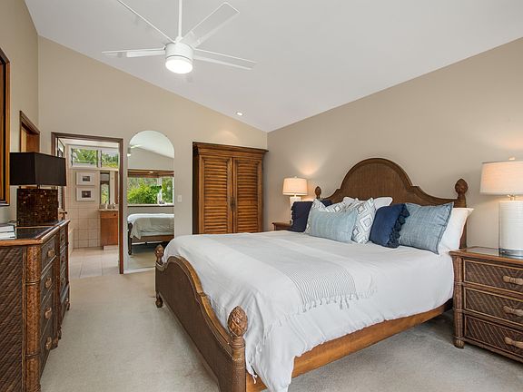 Welcome to Kula Kai and to this large, lovely home that offers a versatile floor plan that could work for almost anyone. There are 4-bedrooms, 3-baths and multiple areas to just ‘hang out’ in. The current owners have done quite a bit of remodeling (think: kitchen and bathrooms) and adding-on to make their home a welcome retreat for visiting family and friends (think: separate guest quarters). The primary bedroom suite is on the ground floor and has a beautiful ensuite bathroom with a glass block walk-in shower, 2 sinks, a soaking tub, a separate ‘water closet’ and a cedar-lined linen closet. There are over 20 photo voltaic panels (owned) that help keep electric costs down. The property is gated and has nice rock walls surrounding it for privacy. Multiple raised garden beds, a potting shed and mature landscaping make this a gardener’s dream. Add to this 2 water features and an outdoor shower…….you aren’t going to want to miss this one!