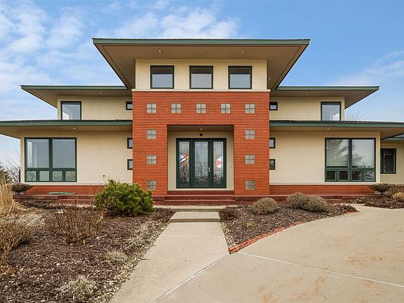 Inspirational prairie-style home seamlessly blending interior & exterior areas. Peace & harmony is created in this architecturally designed home w/ symbolic pattern & skillful placement of windows. Elaborate details w/ custom wood stairway, intricately crafted wood chandeliers, colorful hand-painted mosaic tile, original stain glass, granite & wood floors, coffered ceiling & custom built-ins. With its hilltop elevation & precise west to east positioning, a notable presence is achieved. Beauty & nature Brokered And Advertised By: Blank & McCune, The Real Estate Co., Inc. Listing Agent: Lynn Weinstein