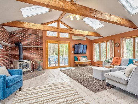 - Fam Dscrp: Skylight, Ceiling - Cathedral, Ceiling Fan(s), French Doors, Balcony / Deck, Open Floor Plan, Flooring - Stone/Ceramic Tile, Wood / Coal / Pellet Stove, Ceiling - Beamed
