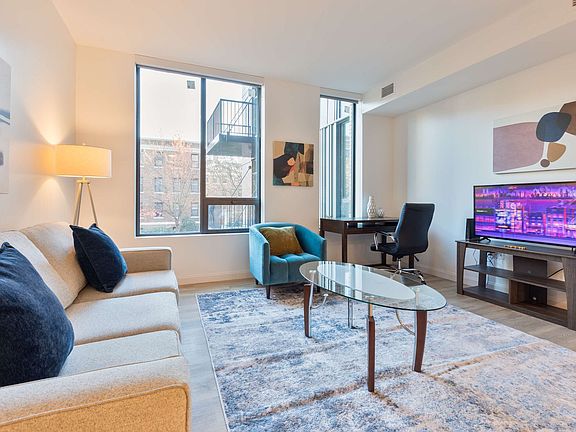 This sleek apartment features stainless steel appliances, quartz countertops, and ample soft-close cabinetry. Select units boast floor-to-ceiling bay windows and private balconies. The luxury extends beyond your home with amenities like a fitness center, yoga studio, pet spa, and concierge service. Sip fresh cold brew in the cafe or work in the chic co-working spaces. Host gatherings in private dining areas, relax in lush courtyards, or take in stunning views from rooftop terraces equipped with gas grills, an outdoor projector, and a cozy lounge. A modern apartment with a marble soaking tub, an expansive kitchen, and a desk. Nestled in the vibrant Fenway neighborhood of Boston, this apartment is a hub of culture, sports, and entertainment. Just steps away, you'll find historic Fenway Park, home of the Red Sox, and the scenic Back Bay Fens, perfect for a peaceful stroll or picnic. The area is a foodie's paradise, with renowned spots like Tasty Burger and Time Out Market offering a mix of local and global flavors. Art enthusiasts can explore the nearby Museum of Fine Arts and the Isabella Stewart Gardner Museum, while nightlife thrives with bars, music venues, and trendy hangouts along Lansdowne Street. Check-in instructions will be provided via email 7 days and 24 hours before check-in.