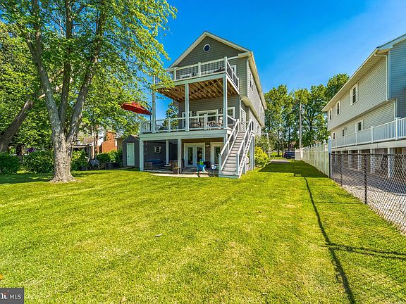 Welcome to this stunning, custom-rebuilt deep waterfront home in Middle River, where luxury meets functionality and every detail has been thoughtfully designed. Boasting approximately 2,440 sq ft of tax-living space plus an additional 1,142 sq ft in the fully finished walk-out lower level, this expansive 5-bedroom, 4.5-bath home offers a total of 3,582 finished square feet of exceptional living. This property has undergone a complete transformation—including a full second-story addition and a total redesign of the main level—making it a truly one-of-a-kind residence. Step outside to a flat, fully fenced yard that leads to a newer pier featuring multiple boat slips, a boat lift, and utilities (electric & water), ideal for boating enthusiasts. The curb appeal impresses with updated siding, roof, windows, and ample parking, including boat storage space. Inside, you're greeted by a breathtaking custom kitchen with rich cherry soft-close cabinetry, granite countertops with OG edge, stainless steel appliances, and a large island with a deep well sink—perfect for entertaining. The open-concept main floor features hand-scraped hickory hardwoods throughout, seamlessly connecting the kitchen, dining, and living areas. The main level also includes a spacious primary suite with an ensuite bath and walk-in closet, plus a versatile den/playroom or potential 6th bedroom and a stylish half bath. Upstairs, two front bedrooms share a jack-and-jill-style bath, while a dedicated home office offers privacy for remote work. The showstopping upper-level waterfront primary suite features breathtaking views, a 12x19 private composite deck, a spa-inspired bath with an oversized vintage soaking tub, frameless glass shower, dual marble vanities, and a custom walk-in closet. The walk-out lower level is built for entertaining with a full bar featuring a barn wood epoxy top, wet bar, additional full bath, optional bedroom space, and a large laundry/storage room. A 10x24 shed adds more storage along the side yard. This home checks every box for premium waterfront living—schedule your private tour today and get ready to live the lifestyle you've always dreamed of!