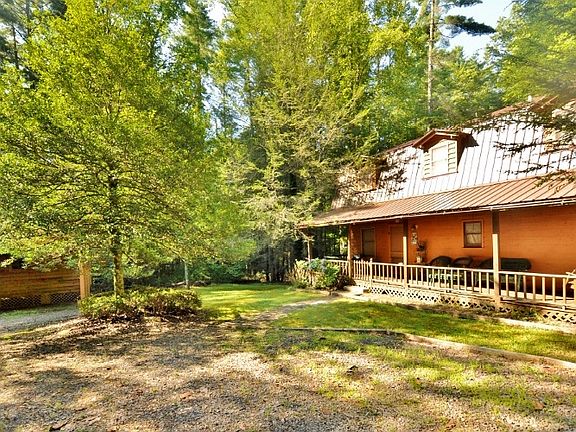 Welcome Home to a Lovely Creek Side Family Chalet. Featuring 3 BR/ 3BA & an additional sleeping room. Stand on the back deck & hear the rushing creek while looking into a very private woods. No other homes nearby-incredible privacy. Enjoy the wooded area swinging on your front porch. Sitting pretty on a very level 1.41 acres w/lots of room for gardening. Double carport w/workshop & circular driveway. Combination great room & dining area is perfect for family get togethers. Spacious 1800+ square feet with laundry/pantry on first floor. Master suites both main floor and upstairs. Metal roof installed in 2011 & brand new well pump 2020. Relax listening to the sounds of the creek and nature.