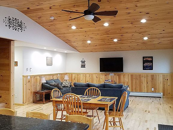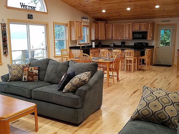 Beautiful newer home on the shores of Schoodic Lake with access to ATV and snowmobile trails. This completely furnished home has an open concept living room, dining room and kitchen with lots of cabinet space and granite counter tops and kitchen pantry. This home has 3 bedrooms, 2 bathrooms, a laundry/utility room and a deck very close to the shore. This newer home is wired with CAT5 data cable for all of your technology needs. A dock and boat lift are included with the sale. This property also has a 12' x 14' shed with a garage door for storage for 4-wheeler, snowmobile, lawnmower, etc. There is over an acre of land with plenty of room to build a big garage and/or other outbuildings. The foundation is poured frost walls with poured 5 1/2 foot frost walls, poured floor with a 3' high crawlspace. The crawlspace walls also have been spray foamed insulated and has its own zone to heat the crawlspace at its desired temperature. There are 4 heating zones in the house. This house is on a private road with yearly road association dues of $100. Water is a drilled well that is scheduled for the 2nd week of September and is included in the sale price (right now it has a shared well but that will be discontinued when the new well is drilled). Great place for boating, fishing, snowmobiling and 4-wheeling!!