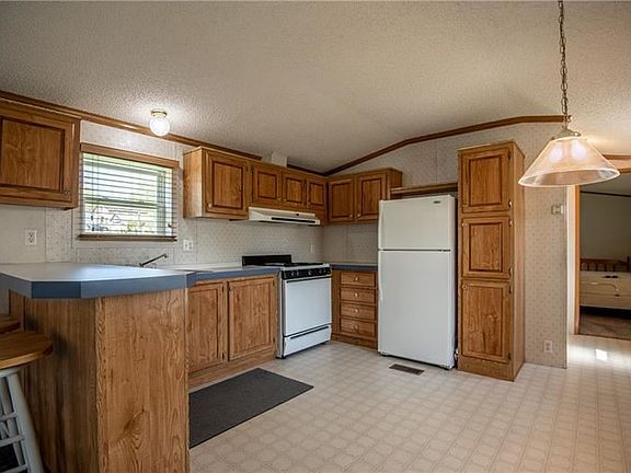 THIS WELL MAINTAINED 2 BEDROOM 2 FULL BATH MOBILE HOME SITS ON A HUGE LOT ON A SIDE STREET IN A QUAINT WHEATLAND NEIGHBORHOOD. THE MASTER BEDROOM HAS A LARGE WALK IN CLOSET AND A MASTER BATH WITH A GARDEN TUB AND A SHOWER. A SKYLIGHT PROVIDES A FLOOD OF NATURAL LIGHT. THE OPEN CONCEPT LIVING ROOM AND KITCHEN HAS A BREAKFAST BAR AND 2 BAR STOOLS ARE INCLUDED. THE GAS STOVE AND REFRIGERATOR ARE ALSO INCLUDED. THERE IS LAUNDRY ROOM AREA LOCATED OFF THE KITCHEN AREA. THE SECOND BEDROOM IS AMPLE SIZE AND HAS A LARGE CLOSET. AN ALLEY PROVIDES EASY ACCESS TO A NEWER 30X40 DETACHED GARAGE WITH EXTRA TALL GARAGE DOORS, A CONCRETE FLOOR, A SIDE MAN DOOR AND FULL ELECTRIC SERVICE. A LARGE SHED IS CONVENIENTLY LOCATED OFF THE BACK PATIO. THIS PROPERTY CONSISTS OF 3 LOTS AND ENCOMPASSES THE ENTIRE CORNER.