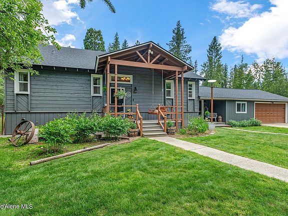This remarkable 4 bed 2 bath and an office featuring 3,218 Sq Ft is available now! Take advantage of not only the granite countertops or the upgraded backsplash in the kitchen but also the double ovens, walk-in pantry or soft close cabinets. Enjoy the main floor master suite with natural light and vaulted ceilings which includes granite countertops, double sinks, jetted tub and the walk-in full tile shower just to name a few. In the living room you are awaited by your own pellet stove, vaulted ceilings and access to a 750 square foot deck! Downstairs you will find a movie theatre room where you have a snack bar and many customized seats with built-ins. On the exterior you will find a new roof ( April 2024) with an extended warranty, firepit along with your own Pizza Oven for entertaining and a fully fenced large yard. Do not forget about your own private community access to Cocolalla Lake just around the corner. You will have to come view this property to see all what it has to offer!