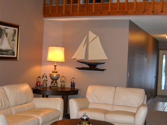 Huge beautiful home on Jimmerson Lake with nearly 5,000 square feet. Seven bedrooms, five full baths. 131 feet of sandy frontage! Brand new siding! Huge deck overlooking the channel. Newer furnace! Sit out on the generous deck with family and friends and watch the boats and wildlife. Living room is open and spacious with a nice warming fireplace. On the main level are three bedrooms and two full baths. The upper level includes the master bedroom, master bath, two additional bedrooms and another bathroom. In the lower level, is a great recreational playground with a pool table and bar, another gathering room, and a bedroom as well as a full bathroom. Walk outside to the water side where there is a large pier for your boats. The kids will love sliding down the slide on the two story deck. If you have been wanting a really terrific home where you can entertain all day and all night long, this is the house for you! And priced below market value for a quick sale.