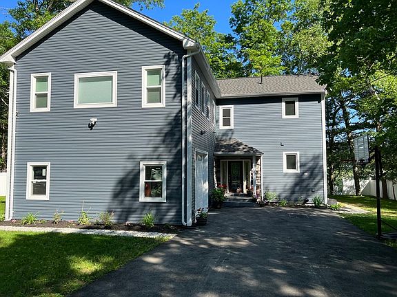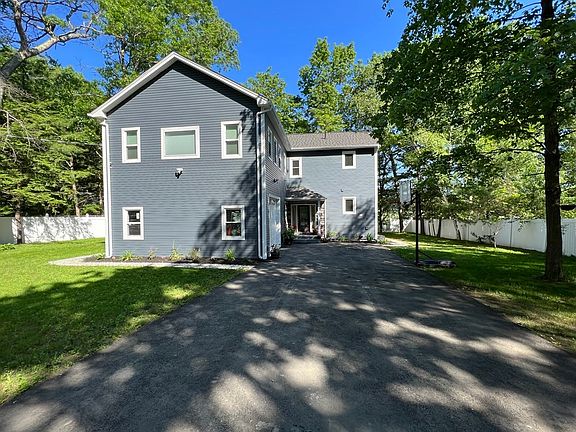HOUSE IN WESTFIELD RIGHT ON BUCK POND!! This remarkable contemporary home is located close to area amenities (restaurants, shopping) was rebuilt save for one foundation wall with all work completed in 2020 (APO). Exterior features include a deck leading to a patio with a built-in fire pit as well as a balcony with a lovely view of the pond. From the patio are steps that lead to a dock! When entering the home, you are greeted by a spacious living room that has a wonderful woodstove that can heat the whole with its ventilation system. The living rooms flows into the kitchen and dining area with the kitchen has gorgeous custom cabinetry and a large island/breakfast bar. The second floor has the master suite with a master bathroom and access to the balcony. Also on the second floor are two more bedrooms with one other also leading out to the balcony, as well as a large game room with a projector and screen, perfect for the movie nights! Do not miss the opportunity to see this home.