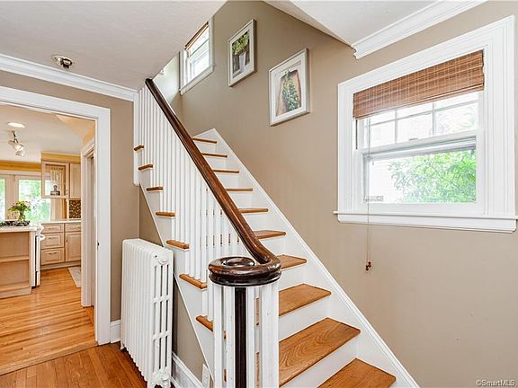 Located in the coveted 'horseshoe neighborhood" and just a short walk to West Hartford Center & Blue Back Square, this four bedroom colonial has so much to offer. Students living here will attend Bugbee Elementary & Hall High School. With nearly 1900 sq feet plus an additional 350 in the finished lower level, there is certainly plenty of space. Enter to the main level where you will find a lovely living room w/ arched doorways, hardwood flooring, crown molding and a fireplace. The living room opens to a den w/ slate flooring and also to the large dining room w/ two built in period corner hutches, chair rail, crown molding & hardwood floors. Off of here is an office/playroom space with cork flooring, newer windows and a built in air conditioner. The kitchen has sliders to the deck, Corian counters with large breakfast bar space, gas cooking, hardwood floors and recessed lighting. A half bath rounds off this level. Upstairs there are 4 bedrooms, all with hardwood flooring. One room offers built ins, perfect for studying or a home office. The full bathroom has both a tub and a separate shower space. Down to the heated finished lower level, which is a great hangout space with vinyl flooring, laundry area & access to the one car attached garage. The home is equipped with solar panels which are owned (no fees at all to the new owner) and will make your electric bills extremely low with some months having no electric bill at all. Environmentally friendly & money saving too!