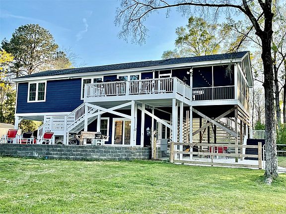 Amazing Views! With over 400 ft of water frontage and a large 1.2 acre lot, beautiful Lake Wateree surrounds you on 3 sides! This charming home has been completely renovated! See the lake from every room in the house. If that's not enough, the huge screened porch is the ultimate lounge spot complete with kitchenette, party lights and hot tub. Featuring granite counters and farmhouse style cabinets and fixtures, you'll adore this beautiful kitchen and the view while you prepare dinner. The ground level area has been finished as another entertainment space with handicap accessible doors, a tile walk in shower and a 3rd bedroom area that can also double as a mother in law suite. The covered 2 car parking area under the home also works as an outdoor party spot along with the elevated concrete patios and keystone retaining wall. The lot is gated for privacy, fenced in for your pets and includes multiple sheds. The floating dock has a boat lift. This kind of property is hard to find!