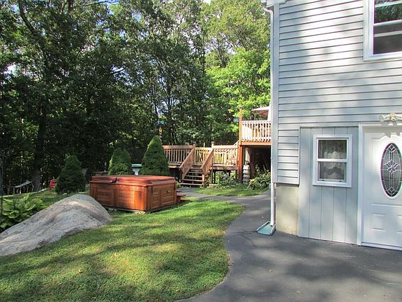 Located less than 15 minutes from 495, shops, dining, and more, this well-cared for split entry ranch sits on over an acre of land is in a quiet cul-de-sac. After seeing the large detached 2 car garage, walk in and up a half flight of stairs into the generous sized fireplaced living room with a cathedral ceiling. Next is the large eat-in-kitchen that leads to a multi-level deck on the way down to the pool. Relax and enjoy the quiet and private back yard complete with hot tub. Back inside you will find a full bath and 3 good sized bedrooms. Downstairs is a full in-law apartment complete with large den, kitchen, half bath and bedroom. Round this out with radiant heat provided by a high end Viessmann furnace / hot water heater. Kitchen and baths need some updating. Freshly painted exterior, new interior doors, fresh paint in downstairs bathroom and more speak to the care that the owners have taken of this home.
