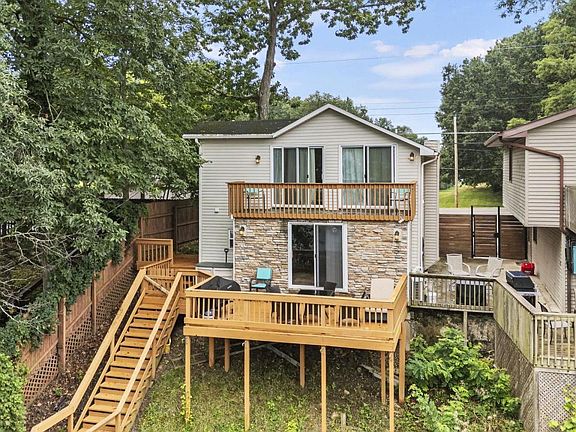 Amazing Views of Lake James from deck on both levels with your own private dock deeded lake access, this home is fully furnished and ready for your enjoyment or would make an excellent investment property, currently used as a rental on VRBO, no HOA restrictions. The main level is open concept , a great space to hang out enjoy the lake life with friends family, featuring a cozy LR with sliding door leading to a good size deck with lake views, a full kitchen/dining area and a half bath a new mini-split A/C unit. Upstairs there are 2 bedrooms, each with its own full bath, separate controlled A/C units and deck access for both rooms with more great views. Access your private dock down the stairs from the deck to a 12' wide easement and 3' x 40' vinyl pier included enjoy the Lake James chain with 1200 acres of water to explore enjoy, including 5 lakes- James, Snow, Jimmerson, Big Little Otter. Walk to restaurants bars-Club P. Traditions, Acapulco, Waterfront Bistro- The 6 Tom's Donuts - Call your favorite agent and schedule your showing!!