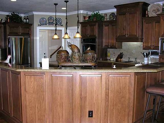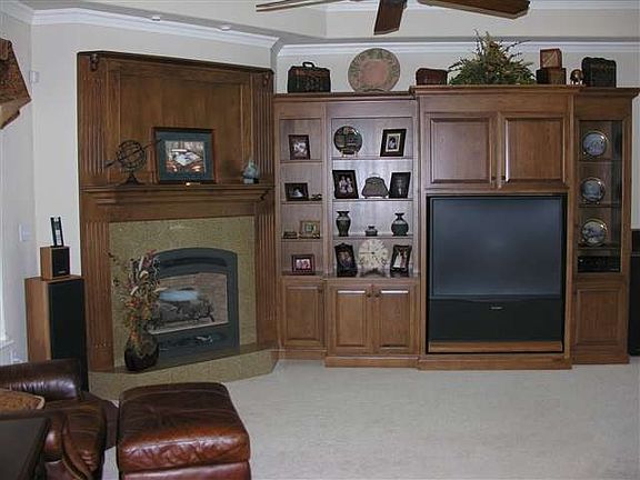 Spectacular Custom Built Home with endless amenities and high end finishes that make this prestigious home stand out!! Kitchen cabinets and entertainment center are both built out of Hickory which are specially designed. Granite counter top, hard wood floors, island bar, huge walk in pantry, and all GE profile appliances in this open concept/gourmet kitchen . Fireplace is made out of cut and polished granite. Crown molding,tray ceilings,huge walk in closets,Media room wired for a wet bar area,walk in attic storage,central vac system, and security system. Master suite is located on the main floor with a covered porch over looking the Lake which could be enclosed. Master bath features his and hers vanities, walk-in closet, and a custom shower. Second bedroom is located on main floor also and has its own suite.This home has been professionally landscaped and has a lawn & landscaping irrigation system.