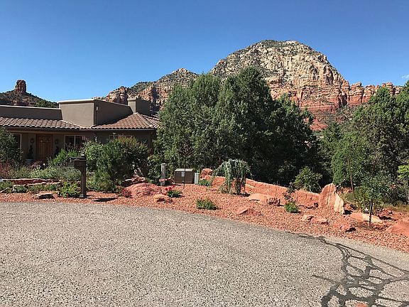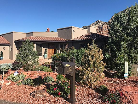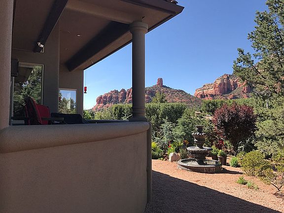 Spectacular newer Southwest home with dramatic views from most rooms. Super location on quiet cul-de sac. Owner purchased the adjoining 1/2 acre lot in 2016 to preserve the stunning north facing and unobstructed red rock views. Both properties were then legally combined through Yavapai county. This home is meticulously cared for and very private. It is in excellent condition throughout, this beautifully cared for home is the essence of Sedona living. In 2013 home has all new exterior paint, new roof and completly redone rain gutter system with 6" powder coated gutters and stainless steel mesh covers. All new 3 car garage quartz floor, and poured expoxy patio deck. This great floorplan has approximately 2530 square feet on the main level (no steps). This includes the great room,kitchen, two dining areas, master bedroom, office and TV room/den/4th bedroom. The 780 square foot lower level includes two bedrooms, a full bath and huge storage area. This home would cost at least $1,200,000 to duplicate on this incredible view lot. Huge oversized garage.