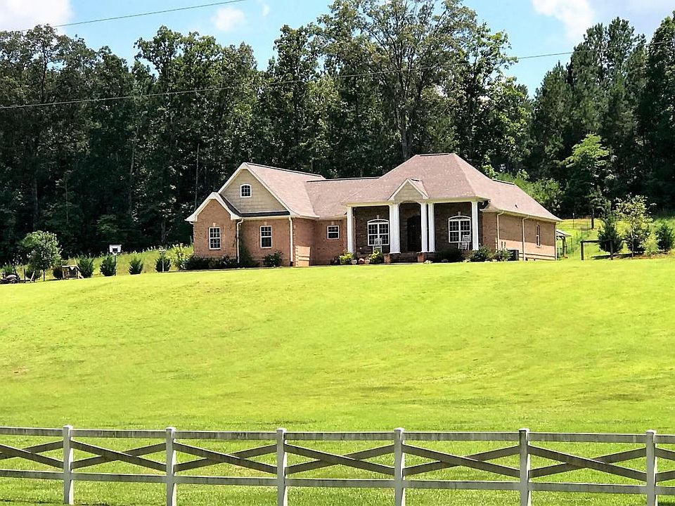 Southern retreat! 7 year old custom built (southern style brick) 3500 sq. ft. home on 12 acres resting on a manicured hilltop overlooking the winding drive & surrounded by trees offering a peaceful & private retreat. The home features 4 or 5 bedrooms, 3.5 bath, kitchen, living & dining area with large covered patio for entertaining. Also offers detached storage building with electricity & plumbing. All info. subject to verification.