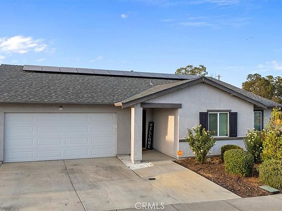 This adorable 4 bedroom with owned solar-newer build sits on a corner lot with easy-to-maintain landscaping. Just minutes from the Afterbay and Lake Oroville, you’ll enjoy endless opportunities for outdoor recreation including boating, fishing, and hiking. Step inside to find a bright and welcoming interior featuring luxury vinyl plank flooring throughout. The open-concept great room offers a spacious living area that flows seamlessly into the kitchen, complete with a large island, soft-close white cabinets, granite countertops, stainless steel appliances, and a pantry. The dining area, with sliding doors to the backyard, is perfect for entertaining or casual meals at home. With three generously sized guest bedrooms and a private primary suite, there’s plenty of room for everyone. The primary suite includes a walk-in closet and an en-suite bathroom with a double-sink vanity and private shower. Additional features include a two-car garage with epoxy flooring. The backyard is ready for your personal touch with a large patio area, storage shed, and space for a grassy play area or garden beds. Come check out this beautiful home and great location!