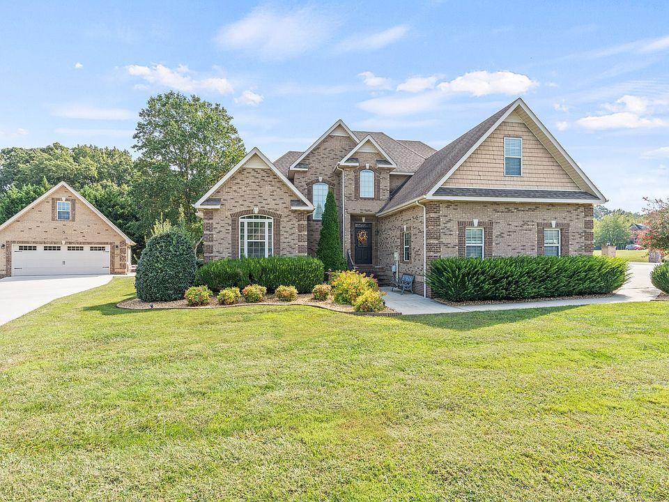 Stunning Executive home in Queen's Estates. This home features 4 bedrooms, 3 full baths, gorgeous hardwood floors, master suite and additional bedroom downstairs with 2 beds and bonus room upstairs. This home is perfect for a large family or those looking to downsize but still have additional room for guests. Enjoy relaxing in the large "all weather room" located off the kitchen. New detached garage perfect for boat storage with additional storage room above. Meticulous landscaping and convenient location. Drive your golf cart to the Country Club. Do not miss out on this GORGEOUS home! Close to Downtown Winchester, Tim's Ford Lake and the hospital.