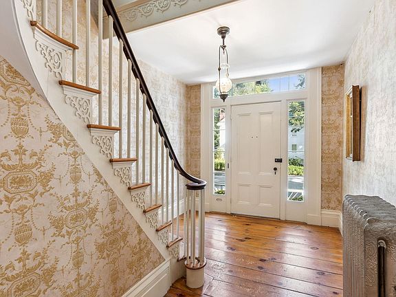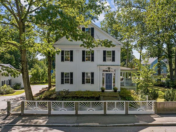 We are pleased to introduce this stunning 1830 New England Greek Revival in Exeter, one of the most beautiful historic towns in New Hampshire. Over the last two decades this home has been lovingly maintained, with original floors, windows, fireplaces, shutters, doors, and much more restored with careful consideration. The main house consists of 4 upper level bedrooms, 3 and a half baths, and a custom designed kitchen with flexible entertaining options connecting to both the formal dining room and lovely outdoor hosting areas. A detached apartment gives many options for multi-generational living or long term leasing. Shaded by mature trees for cooler summer afternoons, the spacious outdoor garden space is fenced in and borders a side street with beautifully landscaped perennial beds and a covered porch that will become your favorite spot for morning coffee. This home is the perfect balance of historic and modern - with a restored sunburst fence built during the turn of the century, double hung pocket shutters, and original clawfoot soaking tub all complimented by central AC within the upper floors, new custom low-e storm windows, spray foam in the attic, and many other recent updates. Situated just one block from the train station and neighborhood shopping district, with the bustling downtown and Phillips Exeter Academy just beyond. The neighboring dead end street has walking paths connecting you to school, two playgrounds, and athletic fields.