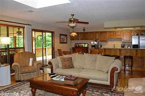 Just minutes to all the conveniences! This Wooded Golf Front lot offers View and Beauty! Easy access to pool, trails, and lake and golf! Open floor plan with granite in kitchen! Two BR and Two BA on main level! Living area, bedroom, and bath downstairs offers perfect guest suite! Freshly painted interior and exterior, New deck on both levels, hardwood floors! Huge workshop can be accessed from inside or outside! Paved cart path to course! Seller offering one year home warranty~This one is move in ready!