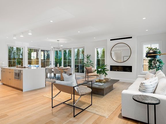 A completely reinvented home is unlike anything else on the market. Boardman & Company has spectacularly reimagined this striking property with no detail overlooked. Through the foyer is an expansive open-concept living room with a gas fireplace. The living room flows into the eat-in kitchen with custom cabinetry, stone countertops, high-end stainless steel appliances, and an island. A large dining area off the kitchen has two sets of sliding glass doors to the patio & yard. There is also a half bathroom and coat closet on this floor. Upstairs houses the luxurious primary suite with a 12' walk-in closet, additional closet, and spa-like en-suite bath with a double vanity, curbless shower, and deep soaking tub. There are two more bedrooms with en-suite baths on this floorr. The lower level hosts the spacious family room with a sleek wet bar, guest bedroom, and full bathroom plus a laundry room. The lush backyard is surrounded by a privacy fence with baby trees.