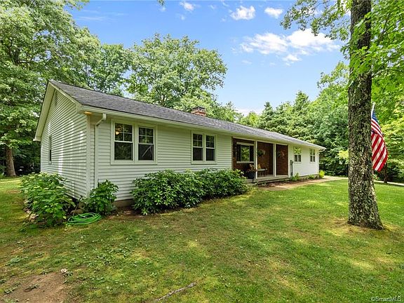 Looking for privacy and land? Well look no further than this lovely 3 bed, 2 bath ranch set back from the road on almost 4 acres of beautiful land at the end of a dead end road right on Mashapaug Pond, next to Bigelow Hollow State Park and the MA border. This unique property features an open and flexible floor plan with loads of room. The spacious kitchen with dining area offers S/S appliances, a breakfast bar and sliders leading to your back deck- a wonderful place to dine al fresco! The light and bright living room has resilient vinyl plank flooring, fireplace, and a large window looking out to the beautiful front yard. The home offers a convenient mudroom/laundry room and just down the hall is a full up to date bath accessible to guests. The Master Suite comes with its own full bath and the two other bedrooms both come with ceiling fans and ample closet space finish the main level. Downstairs, the lower level is the perfect flexible space for you to put your finishing touches on- coming with a fireplace and tons of open room, along with storage space. There is a barn on the property for additional storage. The front and back yards are huge offering a fire pit and mature trees making for a park like setting. Sit, relax and enjoy the peace and quiet of nature on the lovely covered front porch! A 2 car garage makes parking easy. The possibilities are endless here. Some personal touches would make this unique house into a beautiful home! Check it out today!