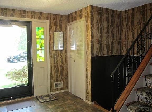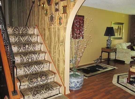 Wonderful home ready for your personal updates. Curved archways lead to spacious lilving room, formal dining room and kitchen. Eat in kitchen with hardwood floors. 3 bedrooms up, master has tons of closet space. Huge family room with brick wall and wood burning fireplace, wet bar, sliders to stone patio. Additional playroom in basement. Workshop. Shed. Large wooded lot on cul de sac.