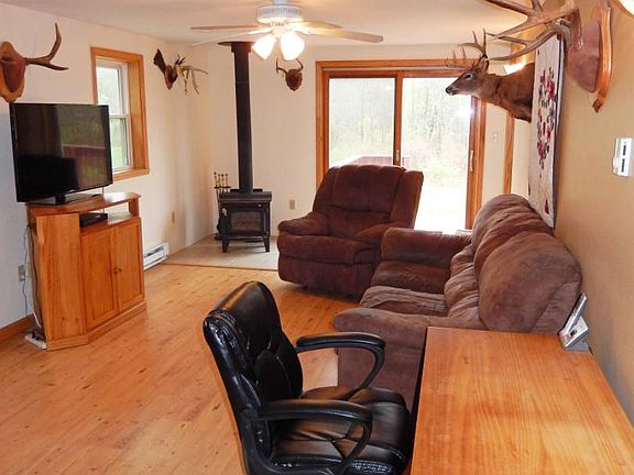 Picturesque 3BR/1BA ranch in Schaghticoke. If you like the look of beautiful wood interiors, you will love this house! Great kitchen for those who like to cook. Large eat-in kitchen with granite counters, stainless appliances, double oven range, and recessed lighting. Nice walk-in closet that could be used for clothes or as a walk-in pantry. Large family room with wood stove and sliding glass doors that lead out onto spacious redwood deck. Great for entertaining. Plenty of room for parking and storage. Attached garage and detached pole barn. Shed. Great location. Close to routes 40 and 67. Hoosic Valley Schools.