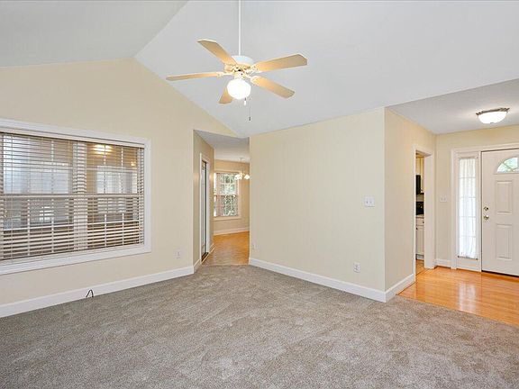 Well maintained three bedroom all one level living home in the desired Spencers Gate neighborhood in Youngsville! Primary bedroom has a large walk in closet, double sinks in bathroom, garden tub and a separate shower! Vaulted ceilings in family room! Sunroom off the kitchen! Two car garage! Large fenced in backyard with an outdoor storage shed! Pool in the community! Conv. to shopping and dining!