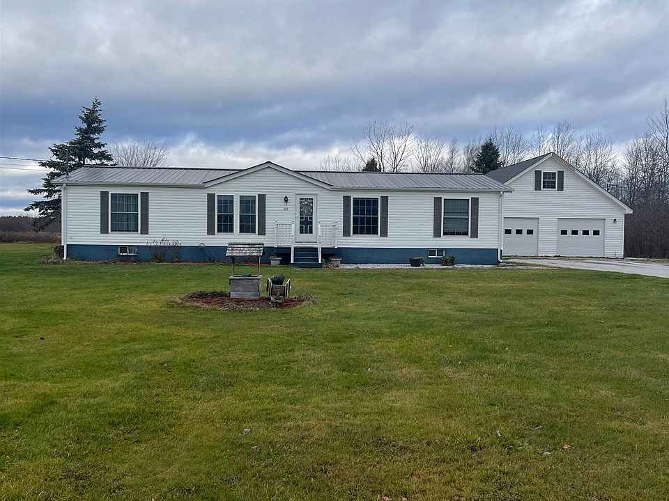 A very affordable home on 5+ acres. This home has gone through extensive renovations under its present ownership. The roof was replaced with corrugated metal. New windows, a new slider, an updated kitchen, new flooring in most of the living area, and an updated primary bath have all been renovated within the last 10 years. A new pressure tank and furnace were installed less than 4 years ago. This home is ready to go. The interior consists of three bedrooms, two full bathrooms, a large den/office, and an updated kitchen. The primary suite is located at one end of the home, and the other two bedrooms and a second full bath are located on the other end. The exterior of the home has a level lot with an oversized two-car garage with extra finished space above. There is also an additional outbuilding to store your landscaping and outdoor gear. As a bonus, this property backs up to state-owned land. If you are looking for a little land with your new purchase, this is a unique property that should not be overlooked.