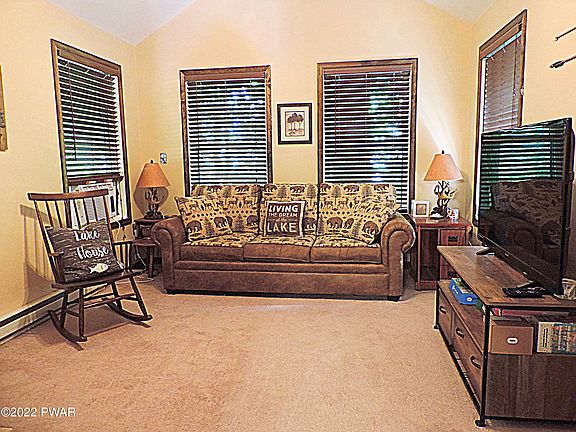 BIG BASS LAKE CHALET - 3 B/R , 2 Bath, Family Room, Open Floor Plan with living room fireplace. Updated kitchen, granite countertops. Sleeping loft . Community amenties include indoor & outdoor pools, 24/7 security, lakes and beaches . 20 minutes from Pocono attractions including indoor water parks , ski slopes, outlet shopping, Lake Wallenpaupack and more.... Being sold Furnished. Short Term Rentals Allowed. Move right in and enjoy all that the Pocono Mountains have to offer., Beds Description: 2+BED 2nd, Beds Description: 1Bed1st, Baths: 1 Bath Level 1, Baths: 1 Bath Level 2, Eating Area: Modern KT, Sewer: WS Comm Central