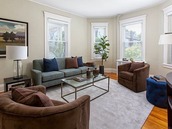 Set on a beautiful tree-lined street and filled with abundant light, this updated two-bedroom condo offers a wonderful layout for everyday living and entertaining. The lovely interior is enhanced with crown moldings, stained glass, hardwood floors, and offers an open living/dining area with high ceiling and bay windows, and private front/back decks. The thoughtfully designed kitchen with island, granite counters, SS appliances, and access to the back deck and landscaped yard is perfect for al fresco dining. There are two generous bedrooms with custom closets and full bath. In addition, the lower level has exclusive laundry facilities, basement storage, and finished bonus room for office or gym. One-car parking and shared backyard and gardens complete this special offering. (2021) water heater & rear decks; (2019) front porch; (2017) roof. Replacement windows. Easy access to Roslindale Village, as well as West Roxbury restaurants and shops, commuter rail station, and Arnold Arboretum.