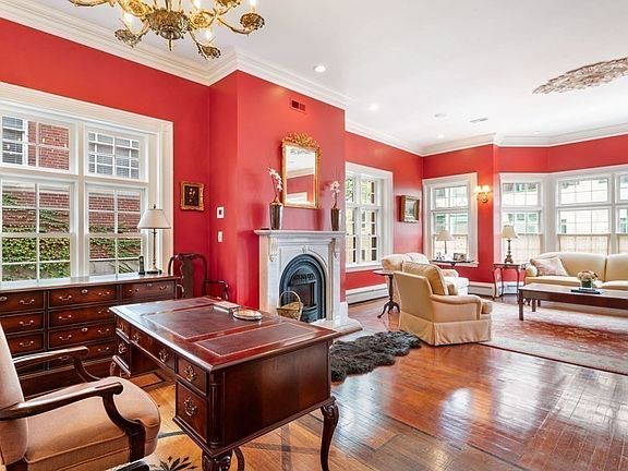 Perched atop Monument Avenue, this architecturally significant, 6+BR/4.5BA, single family home embodies a timeless, classic style with contemporary amenities woven throughout. The handsome corner exposure brick and brownstone facade features an intricate copper oriel. The main level offers a formal dining/living room parlor w/wood paneling, fireplace, and pocket doors to an open family room/kitchen area. The gorgeous second floor parlor offers soaring ceilings, bay window, fireplace, and the grandeur of another era. A spacious primary suite completes this level. The third level features a rare, four bedroom layout on one floor, in addition to an office area and two full BAs. The expansive private roof deck offers extraordinary entertaining space, outdoor kitchen, pergola and panoramic views of the city skyline, harbor and Monument. Lower level features a mudroom, family room, bedroom, full BA, laundry room and great storage. A garden patio and 2-car driveway complete this rare offering