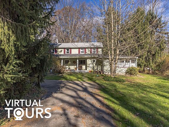 Quaint 4 bd / 2 ba country home set on over 14 acres of lush land! This wooded property features a barn, pond, and plenty of space to build and customize! Pass the covered front porch on your way into the home, where you’re greeted with hardwood floors, crown molding, and natural light. Step down into the dining room, complete with chair rail molding and chandelier lighting, then flow into the kitchen, equipped with tile backsplash, white cabinets, and smooth surface countertops. Entertain guests in the cozy living room, containing a stone fireplace and beamed ceiling! Just off this space is the laundry room and primary suite, with wood wall panels and a full bath. A second bedroom and bath complete this level, while the two remaining bedrooms make up the second floor. Located near parks, farms, shopping, and restaurants! Easy access to I-78/80, hwy 46, and NYC. Buyer should verify all information.