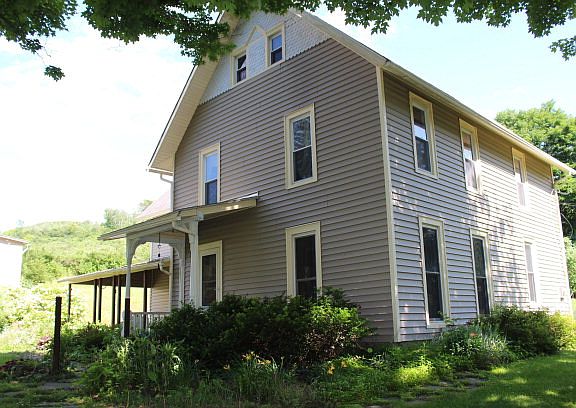Country Charmer!!!! Large 2 story, 3 bedroom farmhouse with many upgrades completed. This home has been in the same family for over 50 years!! Private location just off Rt 14. Beautiful original woodwork throughout. Open stairway plus back enclosed stairway. Large detached garage with high clearance.