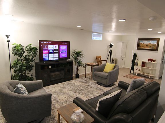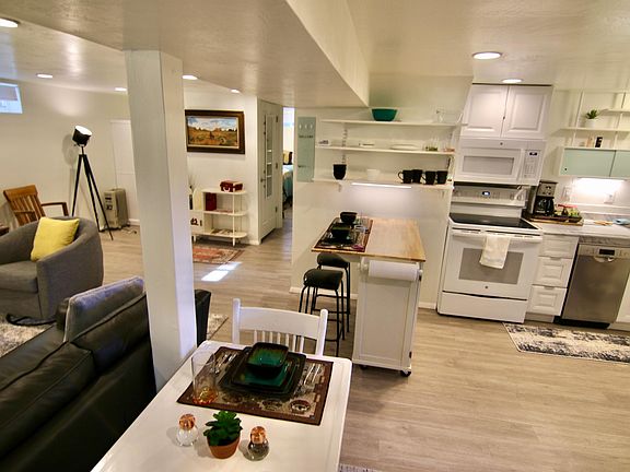 Newly remodeled furnished cozy basement apartment. Perfect for a couple! Available for a month to month rental January - April 2023. Radiant electric fireplace with blower works by remote or buttons on the fireplace. The first bedroom has a California King bed. The second bedroom has a queen bed. New furnishings and appliances are part of the new remodel, with a full kitchen and dishwasher. There is a stackable washer and dryer. High-speed Internet and utilities included. The owner lives on the main level and noise levels are kept very quiet. No pets or smoking. $1,200 month plus deposit. Application, Credit and background check required. Showings available on December 6 & 7. No smoking or pets. Month to month lease January-April. Application, background and credit check required. Deposit required.
